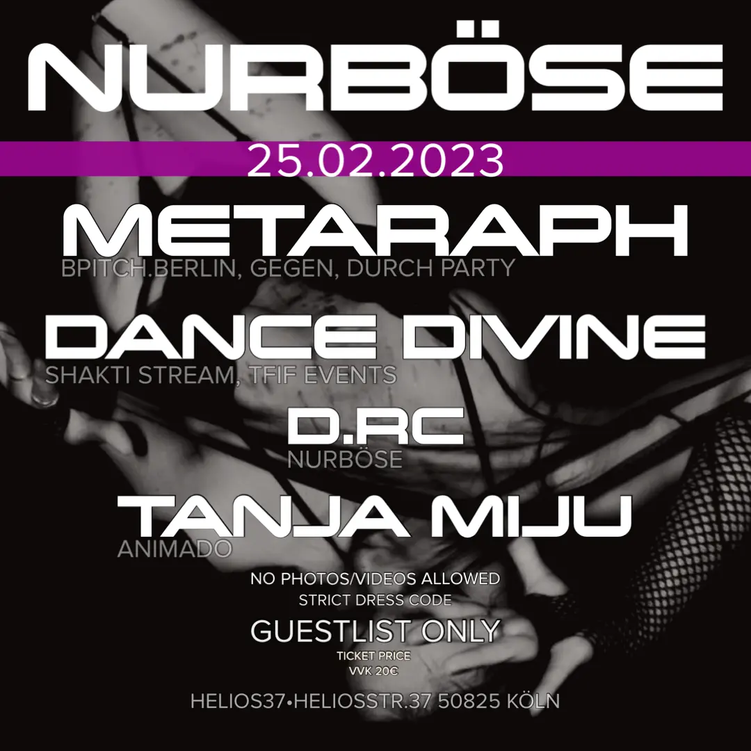 Für weitere Informationen (House Rules, Dresscode, Anmeldung, Gästeliste etc) checkt unsere Social Media Kanäle https://linktr.ee/NURBOESE